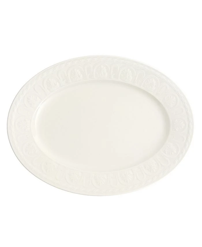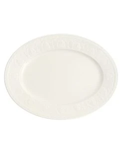 Distinguished by rich relief patterns in milky white china, the “Cellini” collection brings European classicism to the table. Oval platter has a braided edge and ornate floret-patterned rim. Microwave and dishwasher safe.