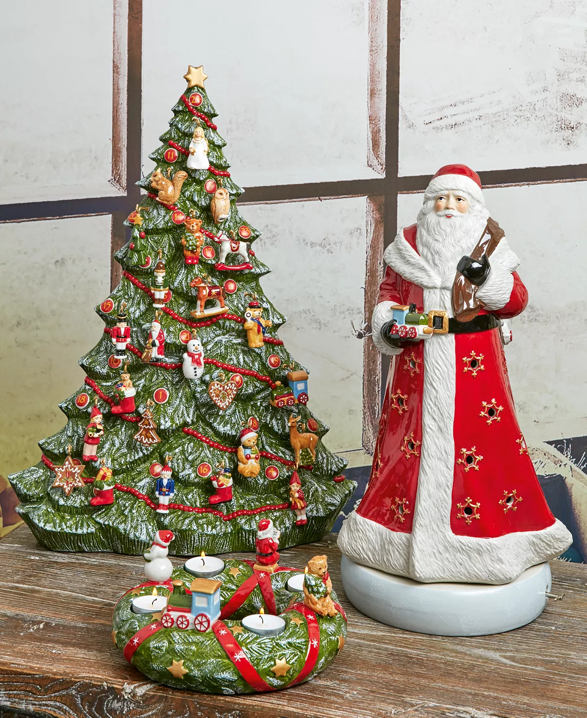 The Christmas Toys Memory Musical Santa stands tall on your mantle or on the centerpiece of your table. Plays Santa Claus is Coming to Town.