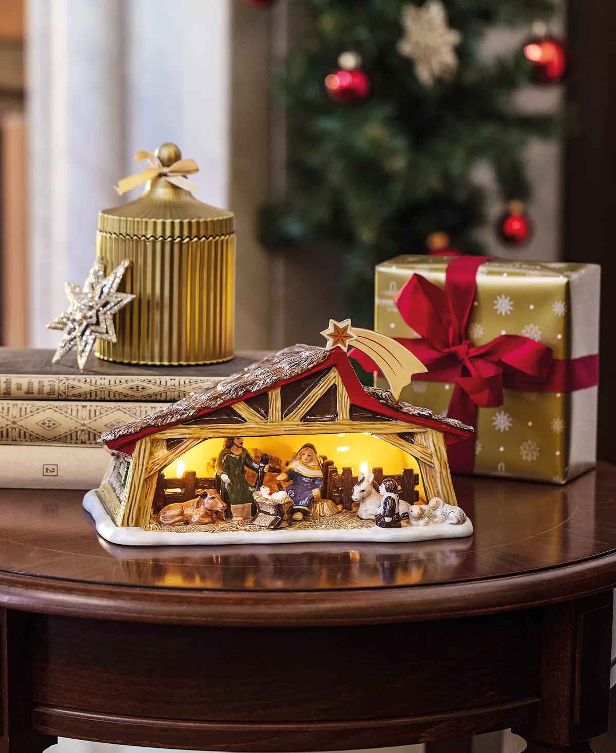 The Nativity scene and Creche is rendered in handpainted porcelain. Treasured memories will be created when you set up this charming nativity set under the tree or on the mantle shelf.
