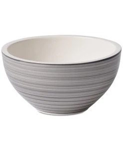 Add a touch of artisanal sophistication to any setting with the striped gray glazing and clean white porcelain of the hand painted Manufacture Gris rice bowl by Villeroy & Boch.