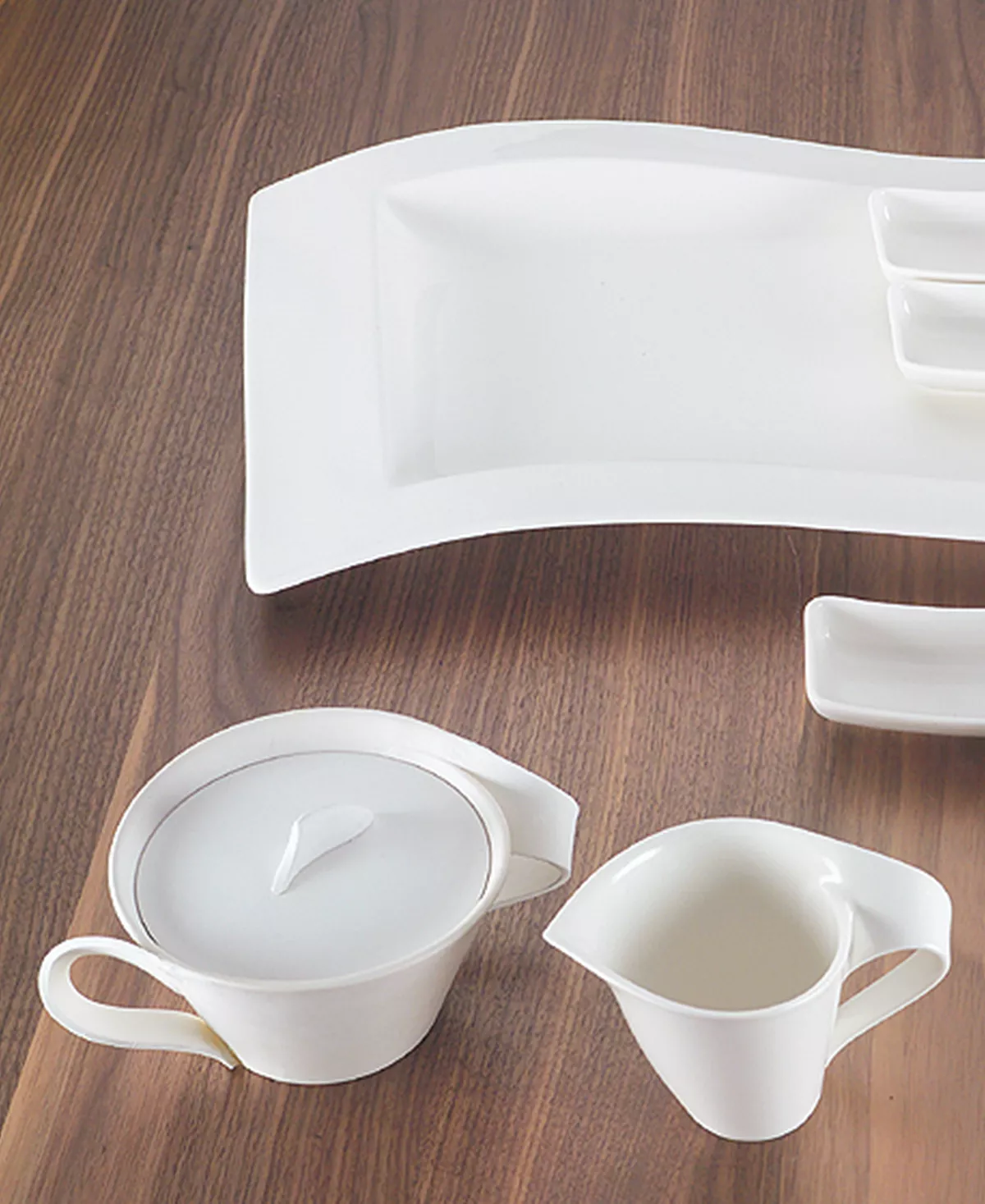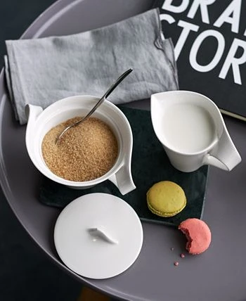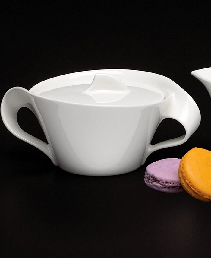 Servingware with an elegant and swirling silhouette. The New Wave sugar bowl is crafted of fine china and makes a refined statement on any table. 8.75 oz capacity. From Villeroy & Boch’s dinnerware and dishes collection.