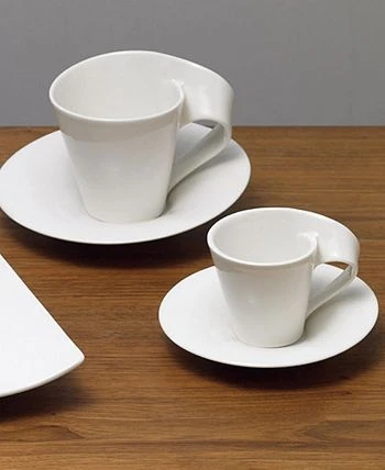 Explore new shapes for your table with the innovative New Wave teacup saucer, featuring a unique, fluid silhouette crafted of premium Villeroy & Boch porcelain.