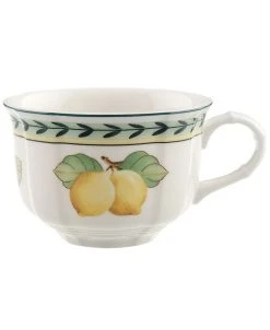 Bring the lush bounty of the French countryside to your table with this vibrant mix-and-match dinnerware collection from Villeroy & Boch. The scalloped Fleurence teacup has a summer fruit pattern on its border and is set against a creamy white background. Dishwasher- and microwave-safe porcelain. Villeroy & Boch has been creating distinctive tableware since 1748. Made in Germany