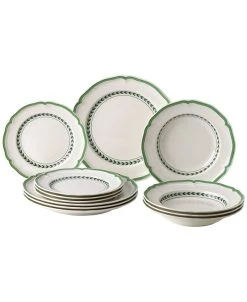 Originally designed in 1997, the French Garden collection brings a country cottage charm into your home. The simple, yet sophisticated, Green Line works well alone as well as in combination with the existing French Garden patterns. The Green Line features the well-known scalloped edges and raised curves from the original collection. The 12 piece set is a wonderful way to start your colleciton and includes 4 each: dinner plate, salad plate and rim soup bowl. Premium porcelain is durable, dishwasher and microwave safe. Villeroy and Boch has been creating beautiful tableware since 1748. This product is proudly made in Germany.