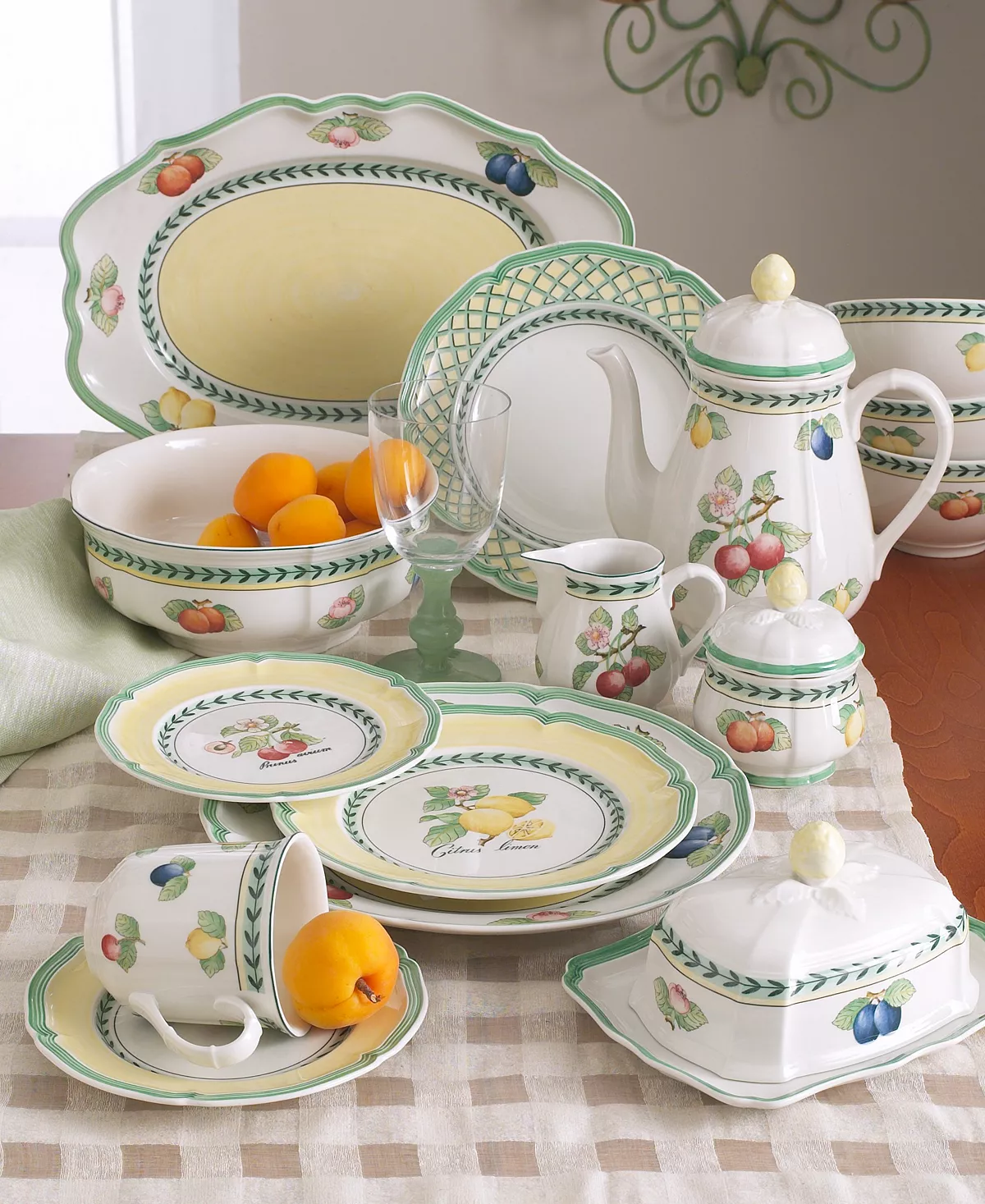 French Garden accessory pieces complement-and complete-the mix-and-match dinnerware and dishes from Villeroy & Boch. In Fleurence, with a pale yellow center and summer fruits around the rim.