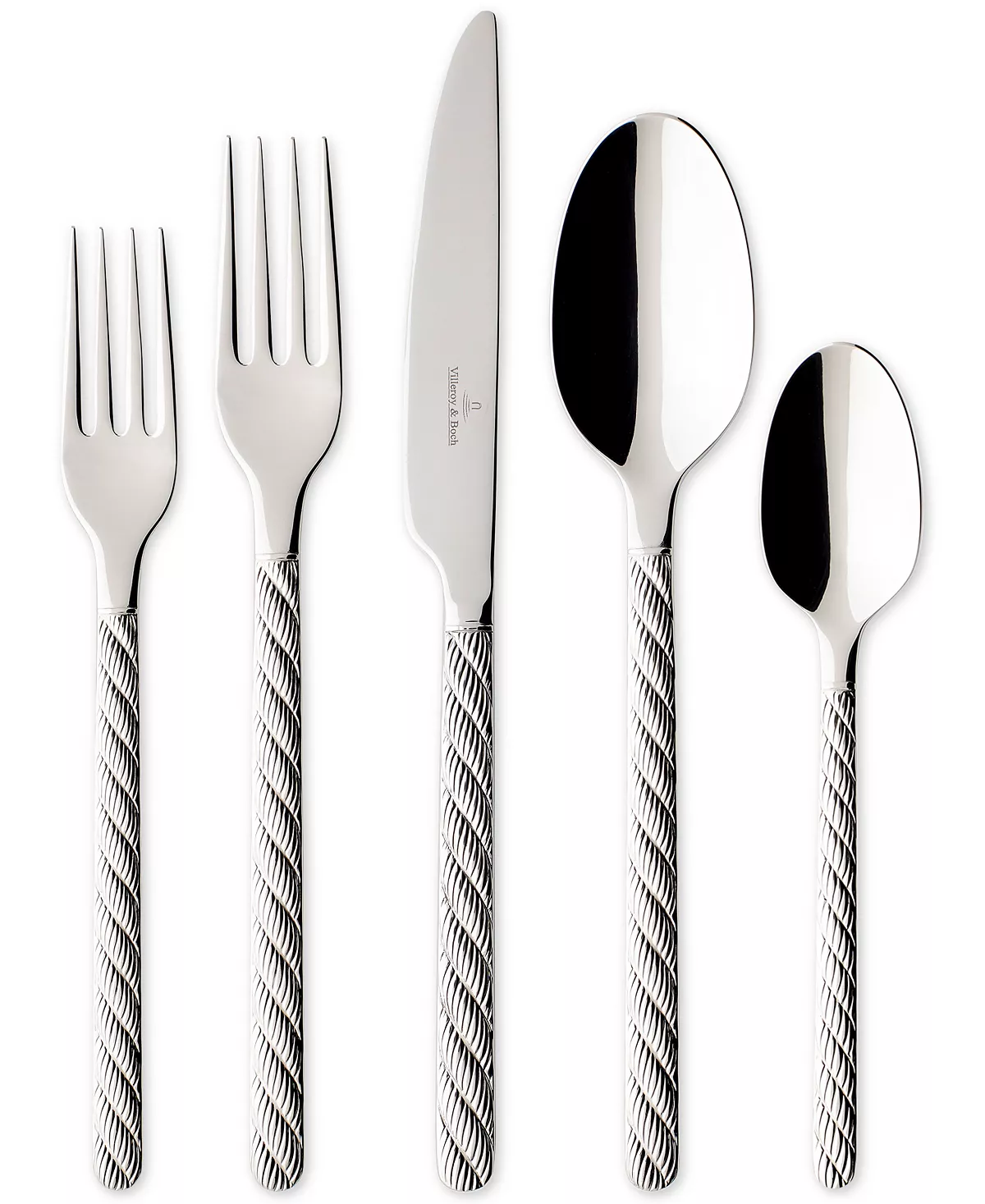 Add a distinctive coastal touch to dining and entertaining with Villeroy & Boch’s five-piece Montauk place setting. A decorative relief design on each handle emulates the twists of a rope in sturdy rust-resistant stainless steel.