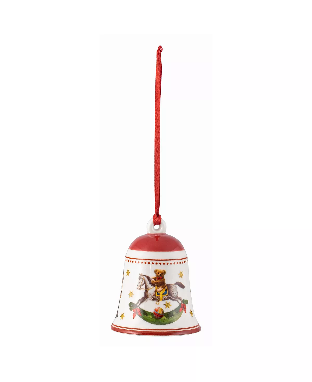 The charming porcelain red bell Ornament is a memorable keepsake or gift and hangs from a lovely satin ribbon.