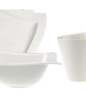 Explore new shapes for your table with the innovative New Wave 4-piece place settings in white fine china. Distinguished by angular shapes in fluid wave designs, each piece works together to create a host of options for imaginative presentation. From Villeroy & Boch’s collection of dinnerware and dishes.