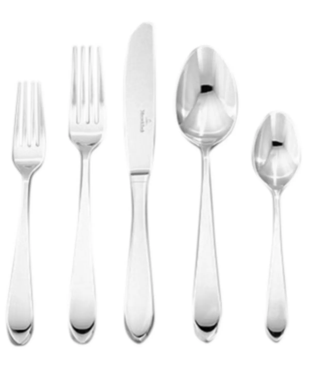 In gleaming, high-polished 18/10 stainless steel, Villeroy & Boch’s Sereno place settings pattern has a paired down appeal that blends well with most tableware patterns. Flared handles end in a soft point.