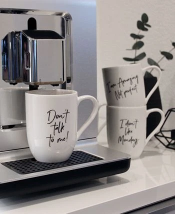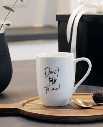 Add a bit of whimsy to your day with Villeroy & Boch’s Don’t Talk to Me mug. The striking black handwritten styled message is set against our creamy white porcelain. Perfect to give friends, relatives or find that special message that represents you.