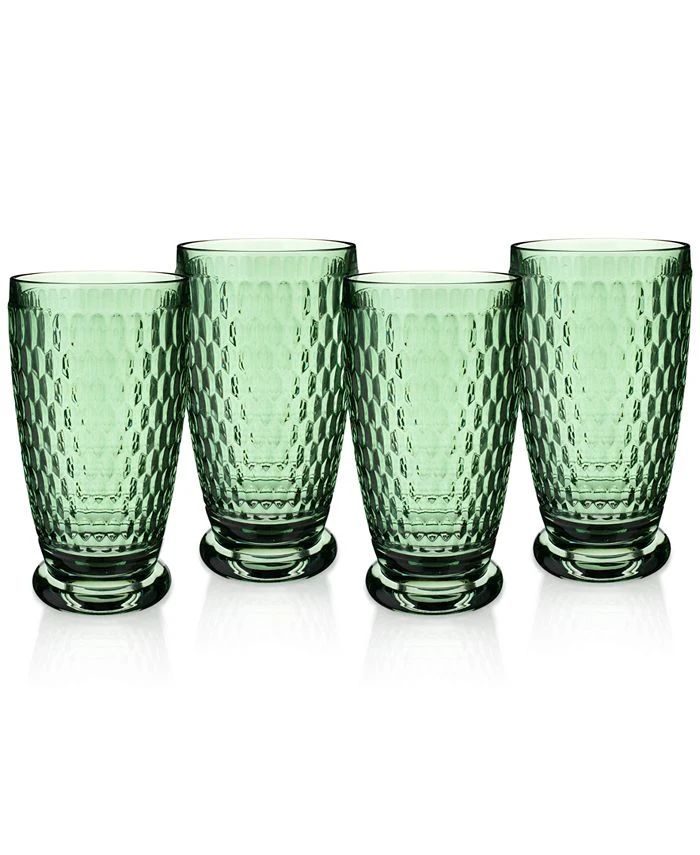 Sip with sophistication. Dressed with a honeycomb pattern, this set of four Villeroy & Boch crystal glasses boast vintage charm.